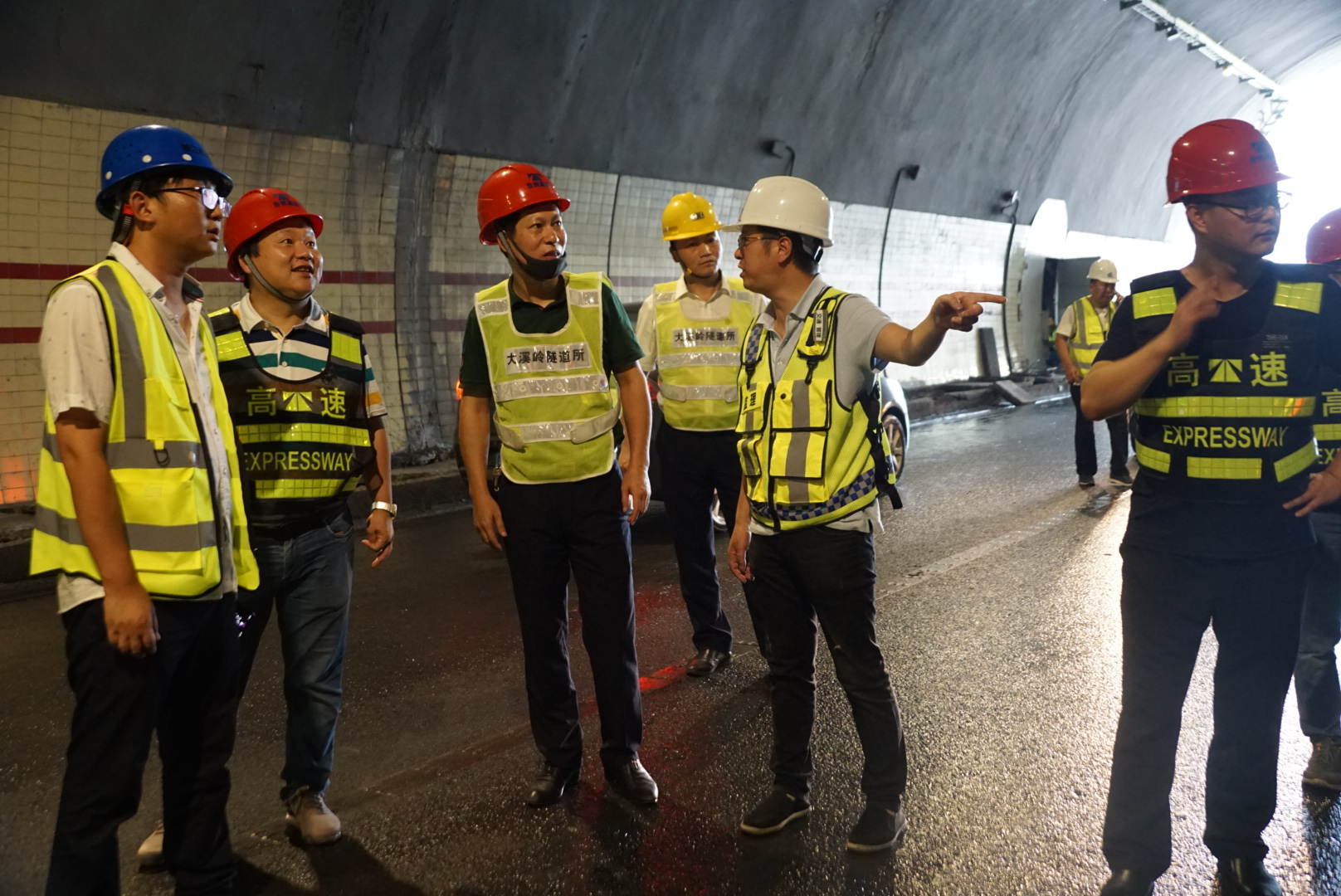 圖為驗收小組正在對隧道進行初步驗收