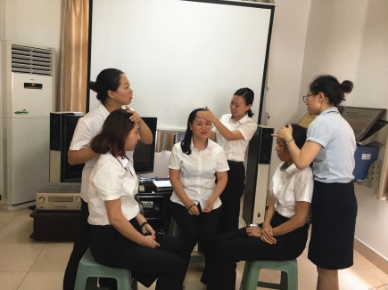 課堂中,一位老師為大家講解了“什么是頸椎病”、“頸椎的重要性”、“頸椎病的危害”等有關健康知識,另一位老師邀請現(xiàn)場人員做示范,用專業(yè)手法演示如何緩解頸椎亞健康狀態(tài)。 在老師的理論講解和親手示范下,在場人員分成兩組,現(xiàn)學現(xiàn)練,一組人用所學手法演示操作,另一組人坐著感受,老師在旁一一指點不足之處,然后兩組人員互換,交替學習。 此次健康講座不僅僅是紙上談兵,更讓每位員工親自練習操作手法,為今后在做好文明服務收費工作中,如何減緩頸椎疲勞提供了方法。 徐蘇蘇