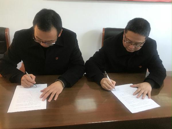 圖為黨支部書(shū)記與班長(zhǎng)簽訂黨風(fēng)廉政責(zé)任書(shū)