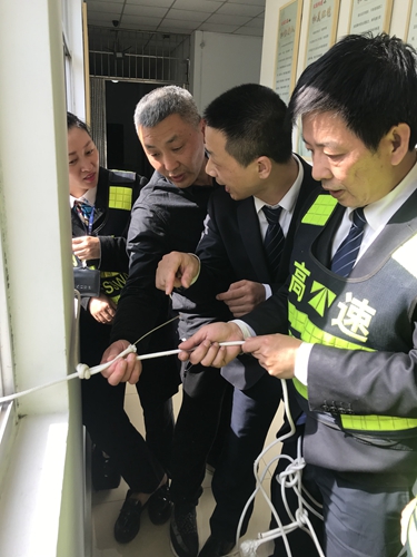 圖為演練現場 隨著所長孫明偉提問式的開場白,近日,臨海南收費所以班組為單位,分四天集中開展全員逃生繩演練活動。全所員工積極參與、親身體驗,活動達到預期效果。 整個演練過程中,培訓人員詳細講解了打繩結的方法與注意要點,現場氣氛踴躍。通過開展此次活動,本所員工不僅掌握了逃生繩的使用方法,提高了高層逃生自救能力,而且進一步提高了面對突發火情的應對能力,增強了“防火防災”的安全意識。 陳瑩
