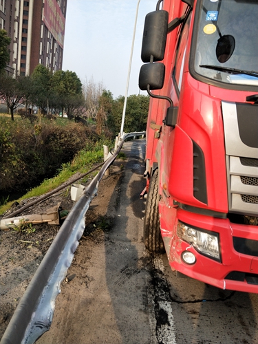 圖為貨車撞向護欄后的場景 據(jù)了解,該車從臨海北上高速,車內(nèi)只有一名司機,在錯過服務區(qū)時頗感疲乏,想著路途不是很遠,堅持會就到臺州出口了,卻在下高速時放松了精神,一下就撞到了路邊的護欄上。7號車道是該所最側(cè)邊車道,幸虧當時車速較慢,撞在護欄后停了下來,否則后果不堪設(shè)想。司機在交費后還對受撞損的護欄進行了賠償。 在此,筆者提醒廣大司機朋友們,天氣漸暖,不管在何時何地開車,一定要避免疲勞駕駛,集中精力仔細觀察道路情況,確保行車安全。 馬德偵