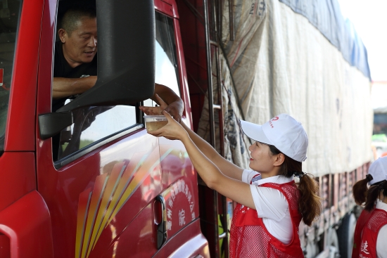 圖為志愿者給司乘遞上飲品 在送清涼的同時(shí),志愿者們還溫馨提醒司機(jī)朋友們不要疲勞駕駛,高溫天氣中注意行車安全,并為不熟悉路況的司乘指引路線。此外,工作人員還在“便民小藥箱”中補(bǔ)充了防暑等應(yīng)急藥品,以應(yīng)對(duì)高溫中暑等突發(fā)狀況。 一杯杯清涼的飲品,幾句簡(jiǎn)短而溫馨的交流,拉進(jìn)了志愿者們與司乘人員之間的距離,司乘人員的好評(píng)將整個(gè)活動(dòng)現(xiàn)場(chǎng)推向高潮。 該所共計(jì)送出200多份清涼飲品,受到廣大司乘人員的一致好評(píng)。大家用實(shí)際行動(dòng)傳遞文明,延伸了服務(wù)的同時(shí),更展示出臺(tái)州高速人的良好形象。 楊雅芬