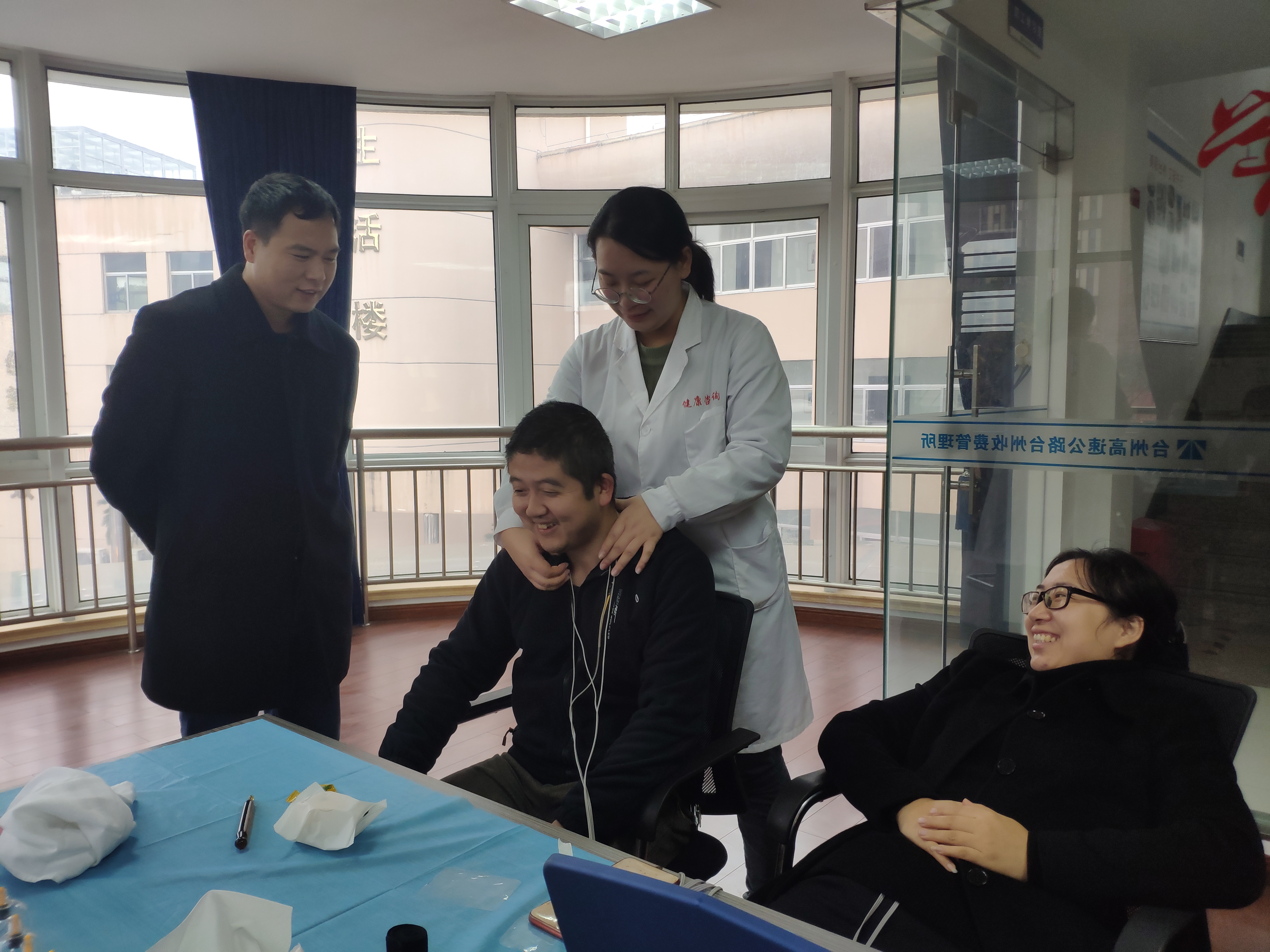 中醫(yī)理療走進身邊 12月23上午,來自上海中醫(yī)大科創(chuàng)基地健康咨詢師萬老師走進臺州收費所,為所里帶來中醫(yī)理療健康咨詢。本次活動包含血壓、頸椎、腰椎調(diào)理、脾胃虛寒等與我們身體生活息息相關(guān)的養(yǎng)生咨詢。