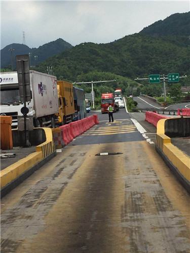 已入三伏天,熱浪席卷大地,透藍(lán)的天懸著火球般的太陽炙烤著大地。 8:30,正是交接班時間,由于四號崗?fù)ぢ访嬲谑┕ぃ瑹o法使用,面對這經(jīng)常出現(xiàn)的大流量,出口承受著巨大的壓力,稍有狀況,就會出現(xiàn)嚴(yán)重的擁堵現(xiàn)象。班長李寧一邊提醒大家一定要加快收費(fèi)速度,自己一邊一直站在一號崗?fù)ね饷妫P(guān)注著各個車道可能出現(xiàn)的突發(fā)情況。收費(fèi)員蔣弓則奔走于5號車道和ETC車道之間,處理著隨時而來的誤闖車和黑名單車輛。所有的機(jī)動人員、行政人員已全部到崗待命。