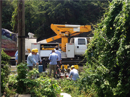 圖為供電部門安裝南配線路
