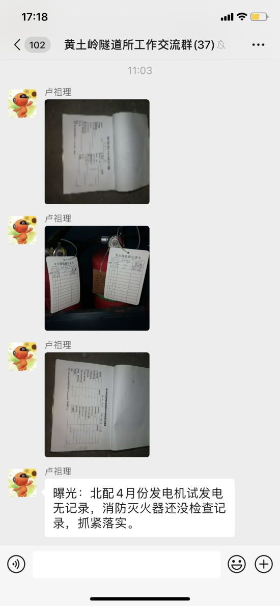 黃土嶺隧道所開(kāi)展“五一”節(jié)前安全大檢查 4月27日上午,黃土嶺隧道所副所長(zhǎng)盧祖理帶隊(duì)分別到黃土嶺、馬鬃嶺隧道,對(duì)洞內(nèi)機(jī)電設(shè)施進(jìn)行節(jié)前安全大檢查。