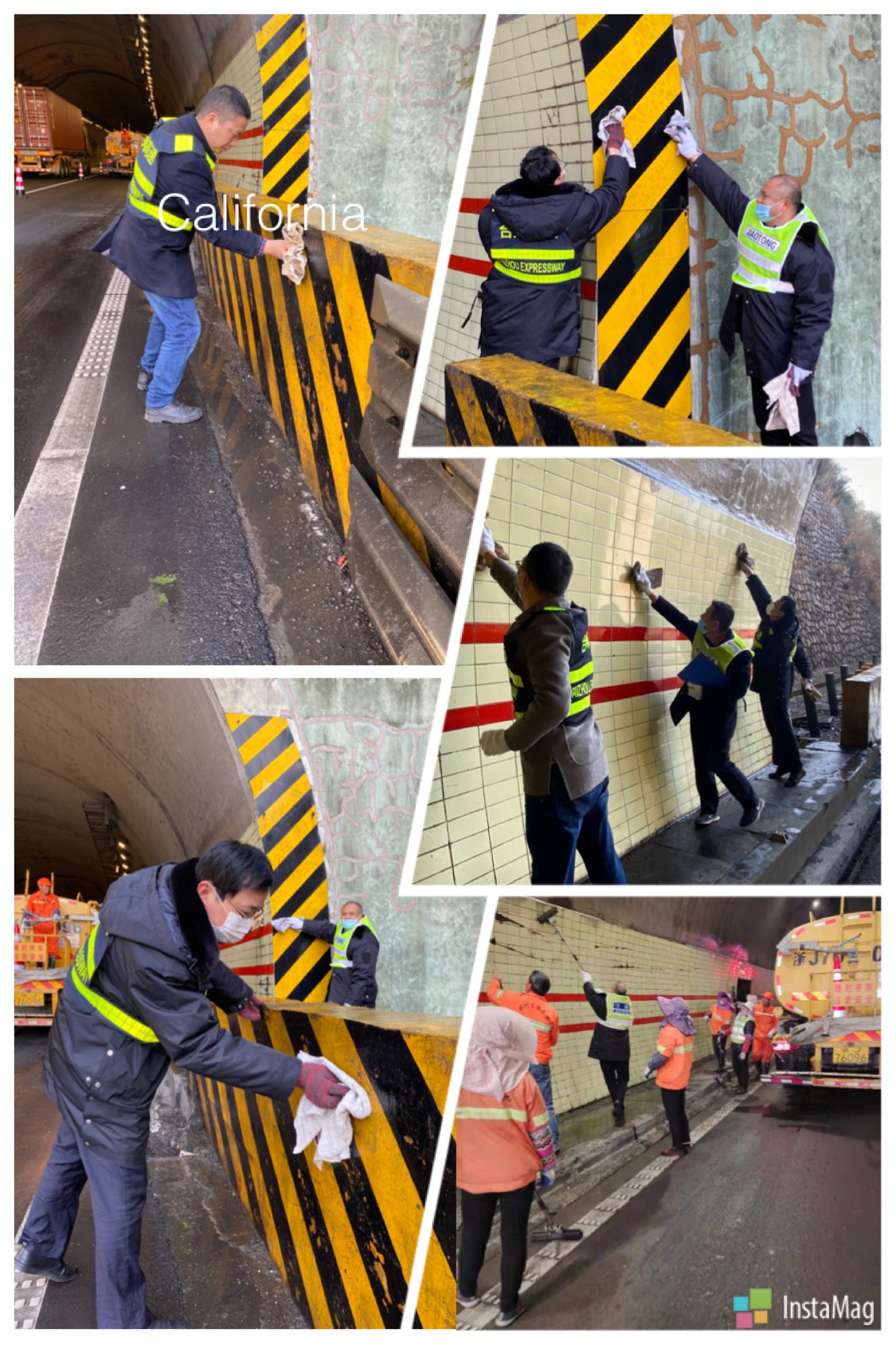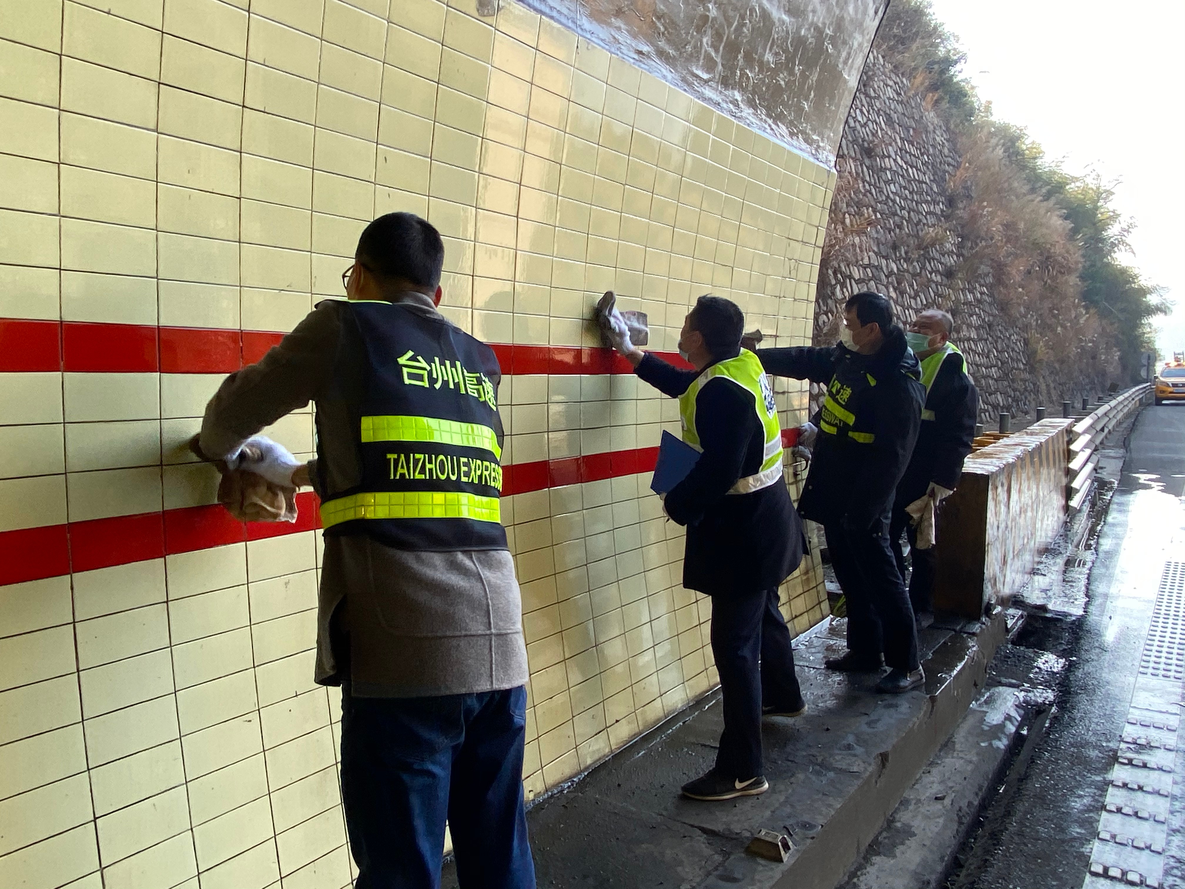 “洞口反光標牌再擦擦,這瓷磚用拖把搓一搓!” “隧道經(jīng)擦洗顯得更亮堂了。”