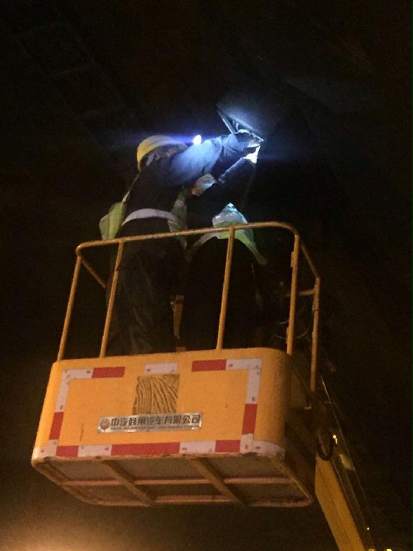圖為進隧道進行搶修 找到無圖像的“癥狀”之后,大溪嶺隧道所電工與維養(yǎng)中心的弟兄“對癥下藥”,在大家的共同努力下,10:49完成攝像頭的搶修工作,寧向隧道恢復(fù)正常通車。 孫鵬