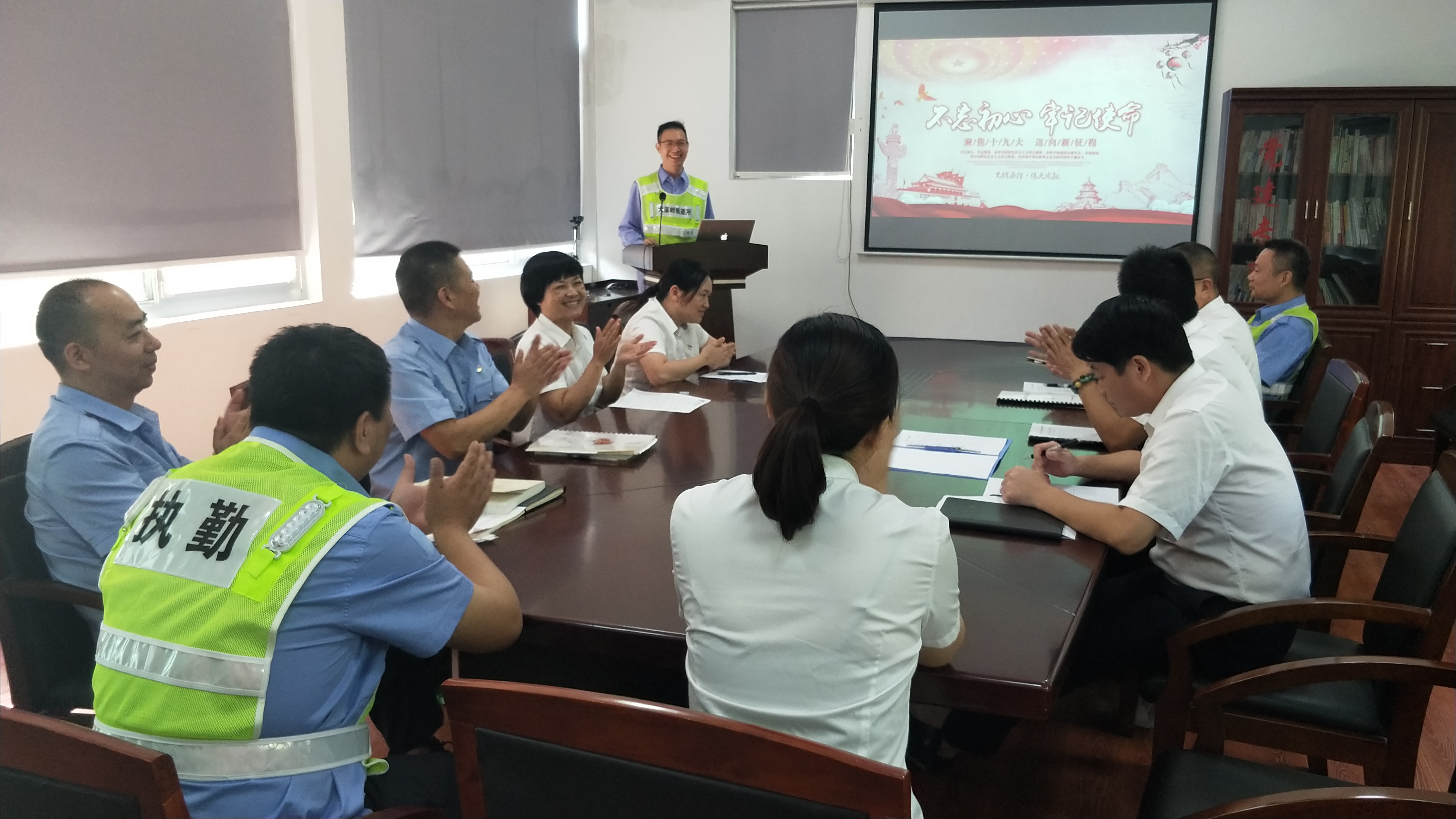 圖為演講賽現場 此次演講由隧道所黨員、執勤隊業務骨干參加,演講比賽過程中,參賽的七位選手緊緊圍繞“不忘初心,牢記使命”這一主題,結合各自的本職工作,立足崗位實際,從不同角度、不同層面,說身邊的人、講身邊的事。有執勤隊長對隧道安全責任的解讀,機電人員對隧道設備維護的擔當,中控員對隧道24小時堅守的承諾,安保人員對隧道消防安全的認知,還有行政人員對奉獻的感慨,演講者們談感想、抒情懷、表決心,為大家分享了各自對初心和使命的認識,從內心抒發了對中國共產黨、偉大祖國無限敬意和熱愛之情。他們用包含深情,富有感染力的演繹,使全場觀眾深深地感受到他們強烈的愛國熱情。