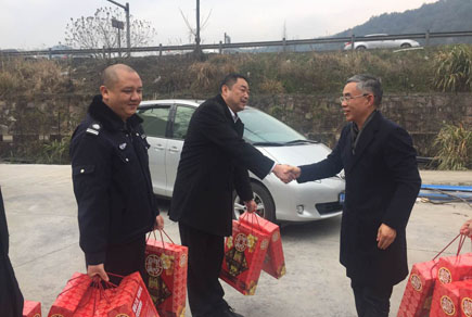 圖為公司董事長謝文君在一線慰問 每到一所,謝文君都向在崗?fù)?nèi)收費(fèi)和監(jiān)控室內(nèi)的員工送上新春祝福,道聲:“辛苦了!”詢問值班安排,了解車流量情況。當(dāng)?shù)弥?dāng)天車流量特別大時(shí),謝文君要求各收費(fèi)所即使是小型客車免費(fèi)時(shí)間,也要合理安排上崗員工休息、吃飯時(shí)間,增強(qiáng)收費(fèi)力量,加強(qiáng)各所間交流,及時(shí)掌握車流量變化,維護(hù)好通行秩序,確保安全暢通。要求各隧道所加強(qiáng)監(jiān)控,時(shí)刻關(guān)注隧道內(nèi)車流變化,及時(shí)提醒過往司機(jī)減速慢行通過隧道,確保過往司乘人員過個(gè)祥和平安的春節(jié)。 此外,謝文君還到食堂、宿舍查看員工在節(jié)日期間的飲食和住宿情況。了解在崗員工個(gè)個(gè)精神飽滿、熱情洋溢,謝文君感到欣慰,鼓勵大家繼續(xù)努力,提供優(yōu)質(zhì)的文明服務(wù),樹好公司形象。