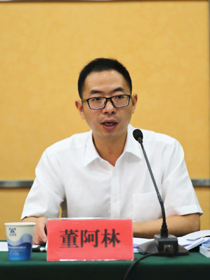 圖為公司黨委委員、副總經(jīng)理董阿林主持會議