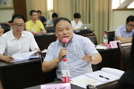 圖為公司副董事長、總經(jīng)理張建平主持會議并作匯報