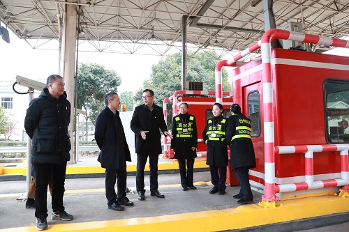 圖為集團(tuán)總經(jīng)理張建平在臨海南收費(fèi)站檢查