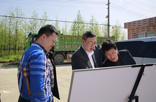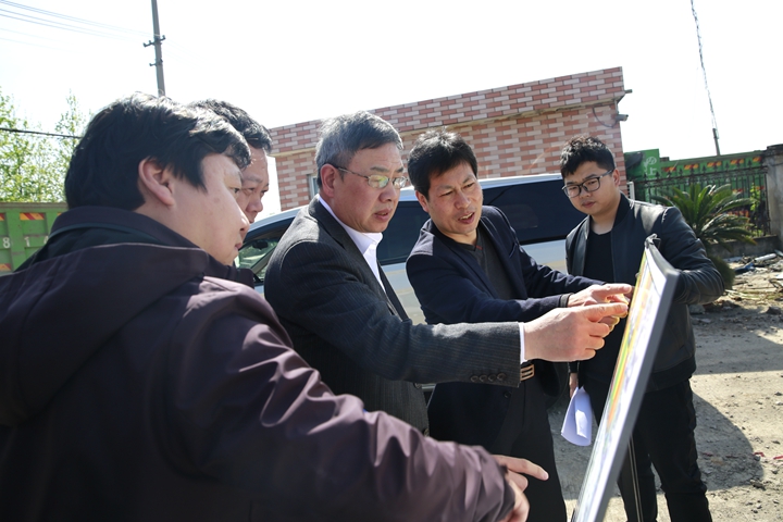 圖為公司領導陳文波在岙林村考察停車區地塊