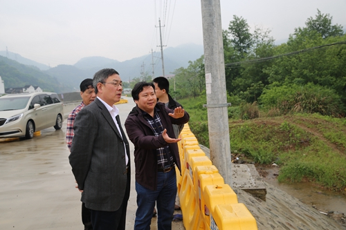 圖為在院橋互通1號橋檢查 細雨中,陳文波一行踏勘走訪了院橋大拉溝104國道跨高速公路主線施工現場、庫灘橋14國道橋洞、院橋互通1號橋等地,了解在實際工作中存在的一些難點問題和存在的安全隱患。