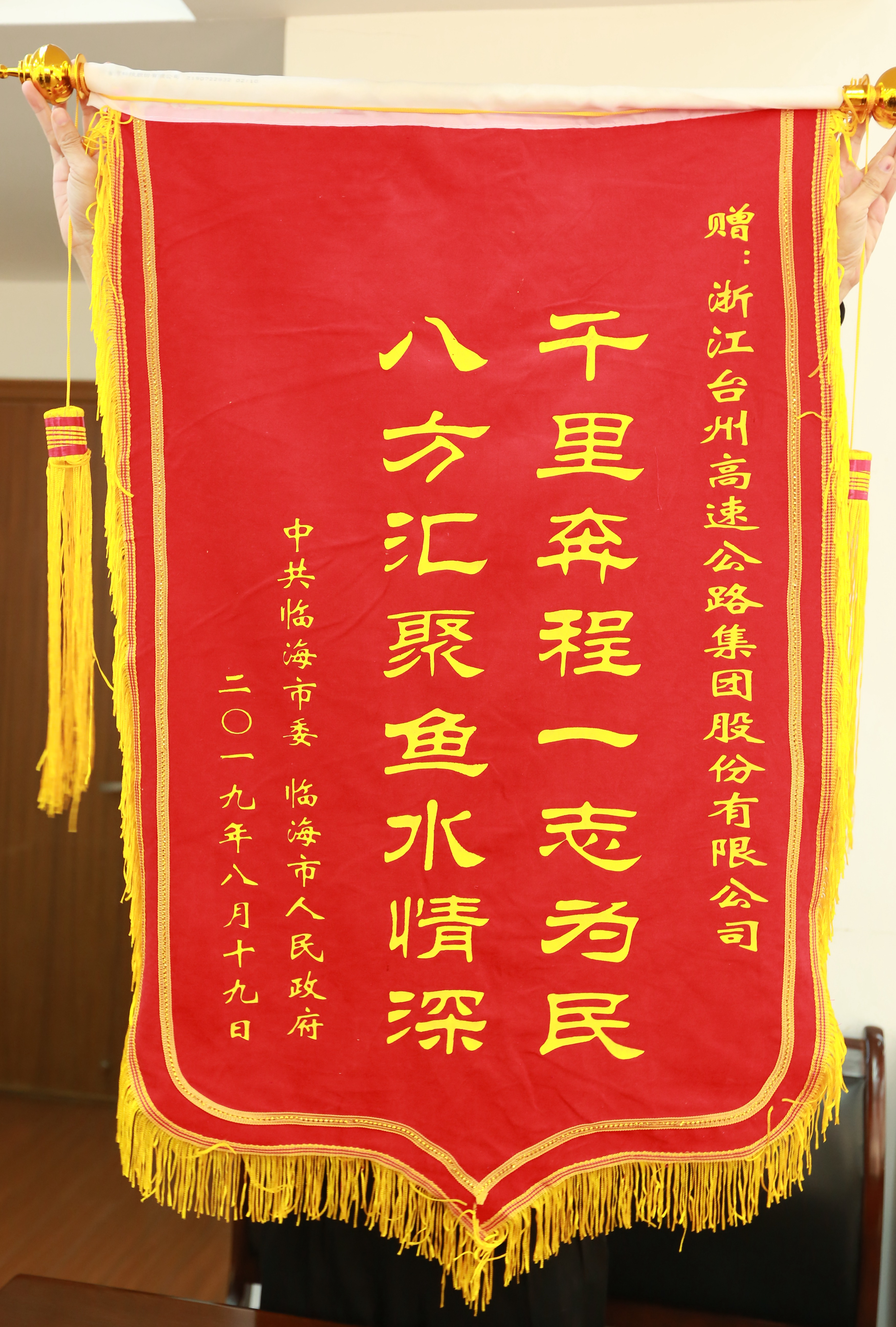 今天下午,臨海市市長(zhǎng)王丹代表臨海市委、市政府向臺(tái)州高速集團(tuán)送來(lái)了錦旗和感謝信,感謝在防御第9號(hào)臺(tái)風(fēng)“利奇馬”及災(zāi)后重建過(guò)程中,臺(tái)州高速集團(tuán)給予的大力支援。