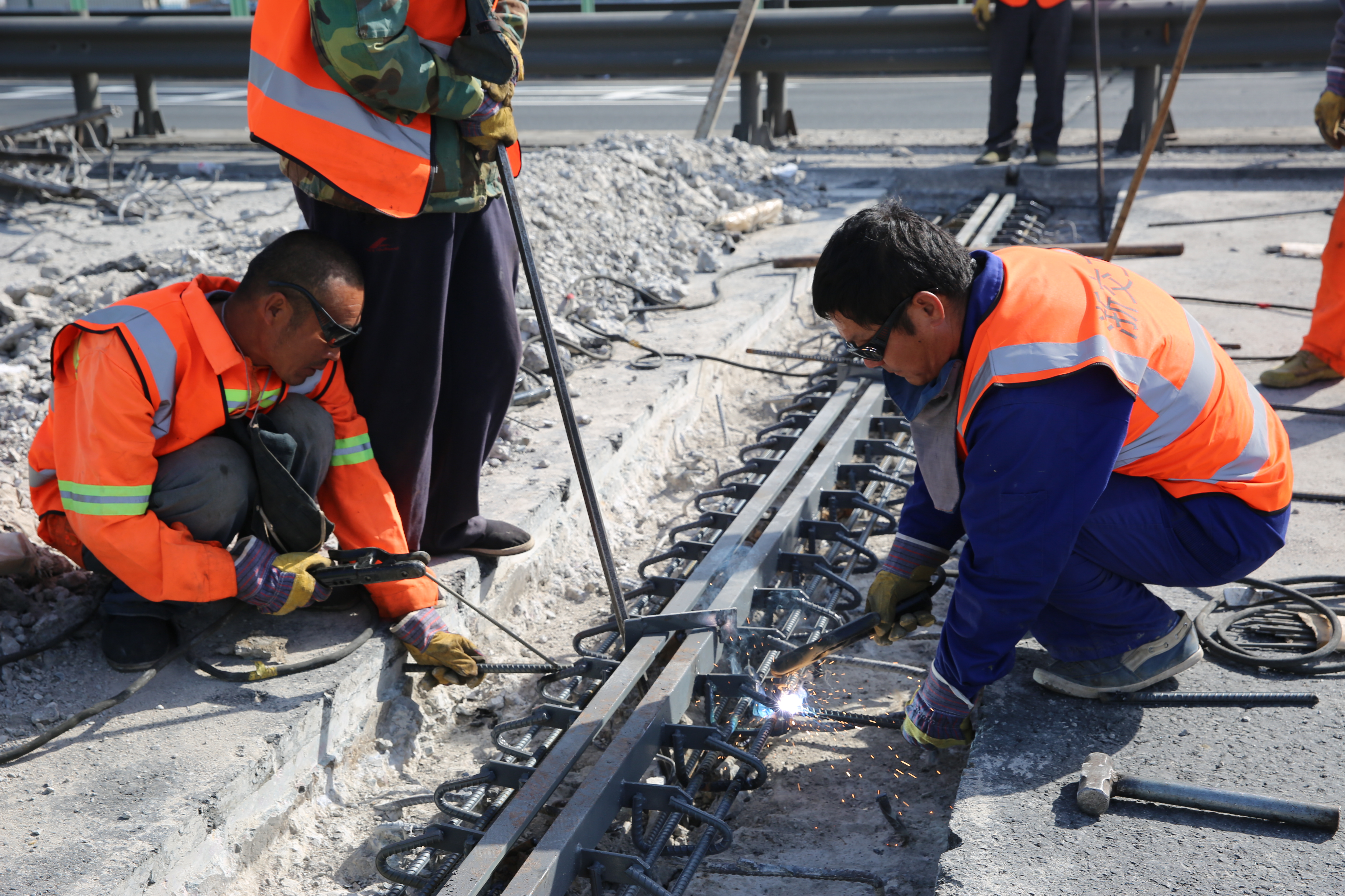 圖為伸縮縫型鋼安裝現(xiàn)場