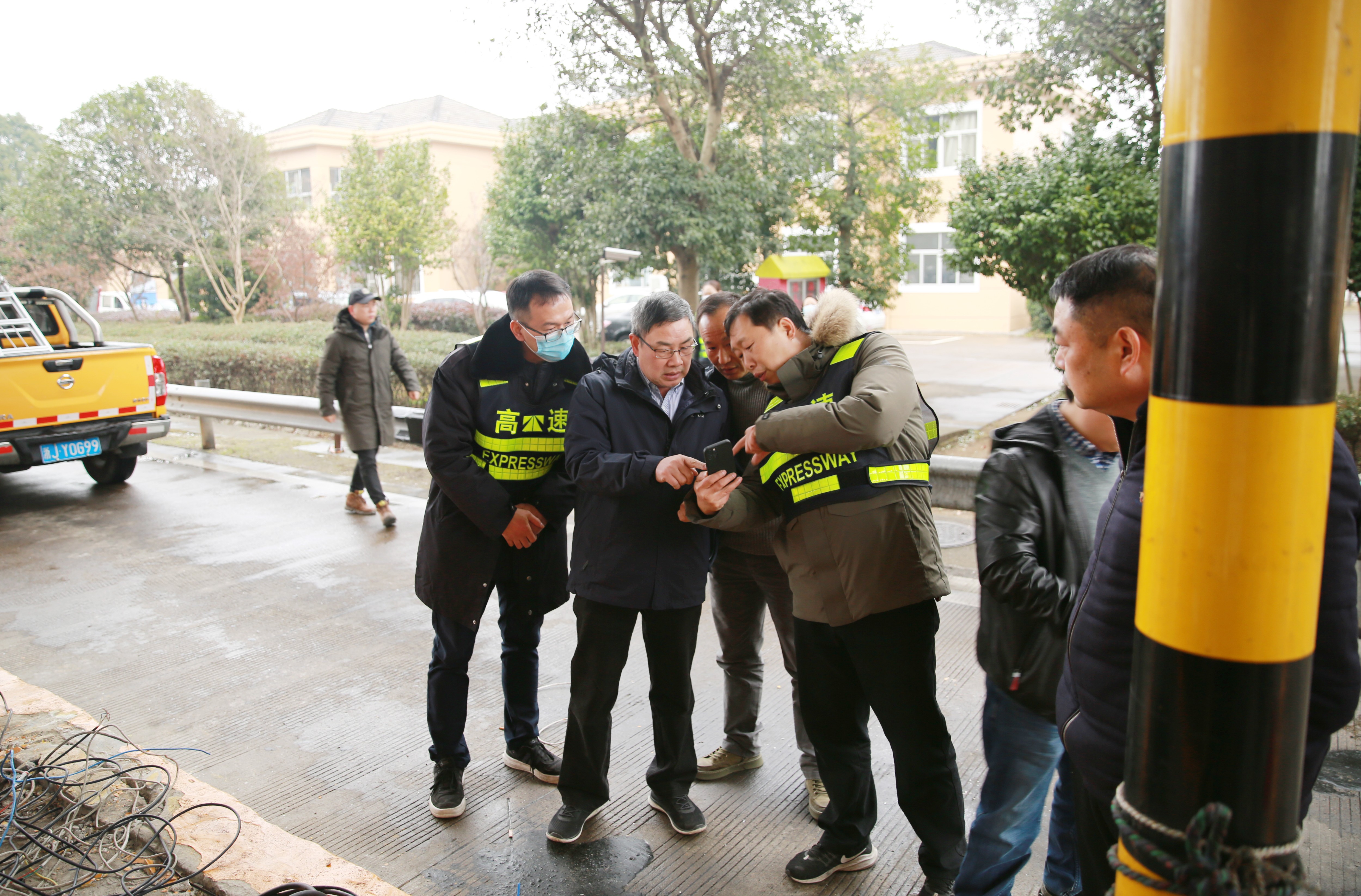 1月20日下午,臺州高速集團黨委書記、董事長、總經(jīng)理陳文波趕往臨海南收費所,現(xiàn)場指導(dǎo)1月19日深夜大貨車撞倒收費崗?fù)さ暮罄m(xù)維修工作。集團副總經(jīng)理章海峰,工程養(yǎng)護部、安保部負責(zé)人陪同。 事發(fā)現(xiàn)場,各種破損之物于昨晚深夜就已被清理干凈,被撞的1號崗?fù)の恢弥皇O侣懵兜母鞣N電線,以及被截斷的防撞柱。陳文波邊查看現(xiàn)場情況,邊同維養(yǎng)技術(shù)人員就如何加強收費崗?fù)ぐ踩禂?shù)展開商討,并提出有關(guān)建議。