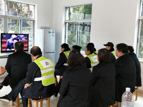 圖為市政公司員工收看現(xiàn)場