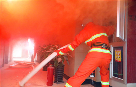 圖為消防隊(duì)員模擬火情