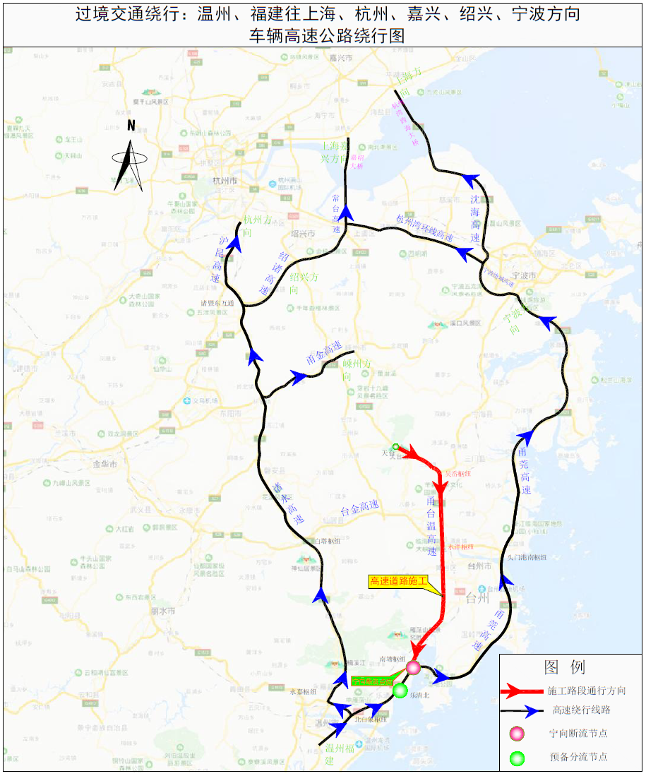 受本次施工影響,福建、溫州、臺州往寧波、杭州、上海等方向的車輛需要提前選擇出行時間和繞行路線。具體繞行線路建議如下: