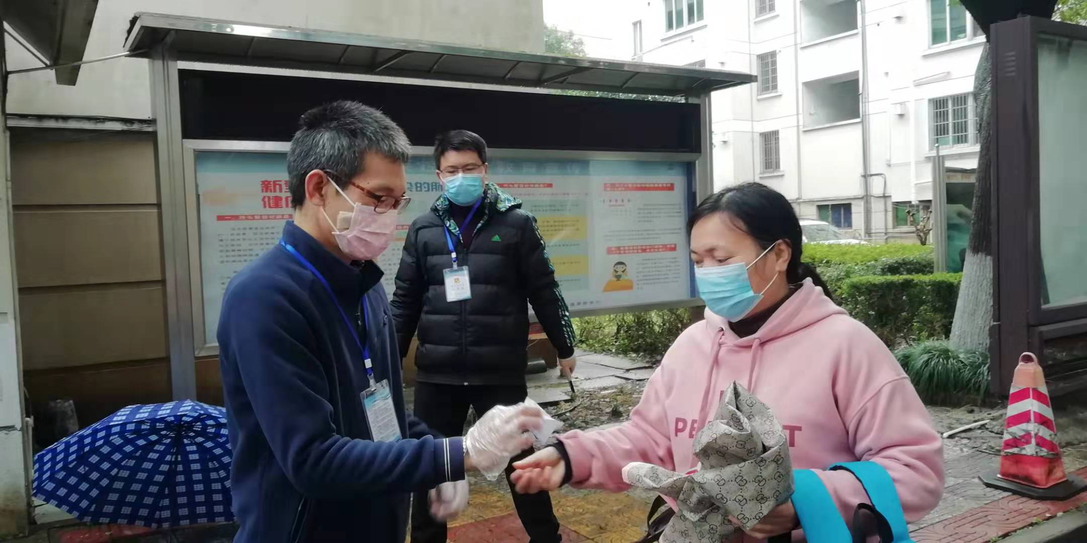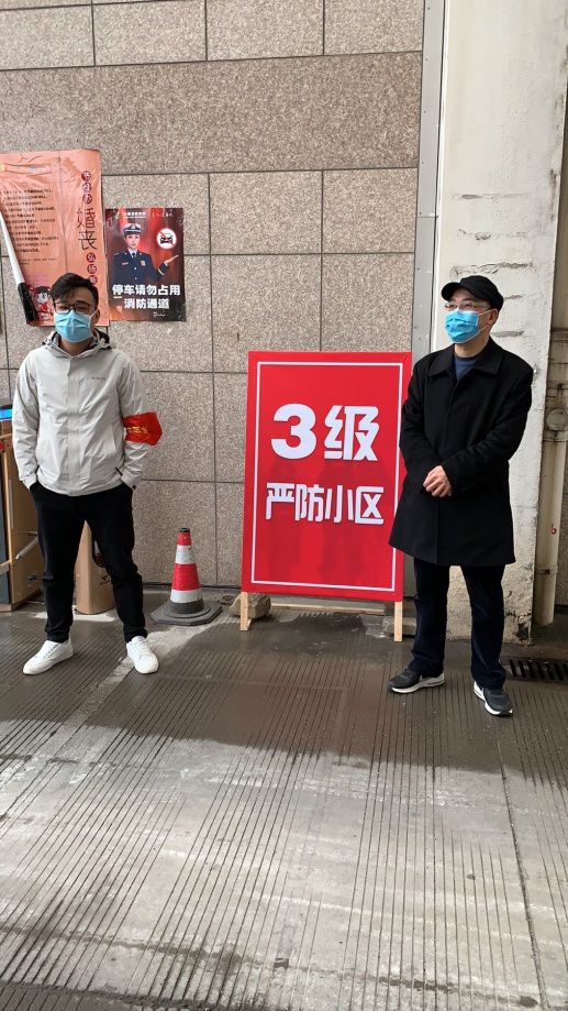 黨員包啟曉,在星洲小區(qū)援助社區(qū)逐家逐戶發(fā)放通行卡,并多次參與社區(qū)卡點(diǎn)測(cè)溫志愿服務(wù)。