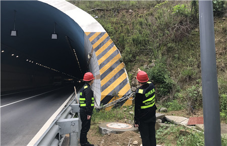 圖為檢查邊坡防護 市政公司工程技術部人員對內環路全線可能存在隱患的路段逐一做了排查,并重點檢查了二號隧道洞內照明、隧道口安全標識、邊坡防護。同時,檢查組還對管理房內的變壓器和配電柜進行了抽樣測試和排查。檢查結果顯示,全線路況及交通設施基本完好、工作正常,但仍存在隧道內部分指示燈不亮等安全隱患,工程技術部人員隨即聯系施工單位,要求其在“五一”節前予以修復。