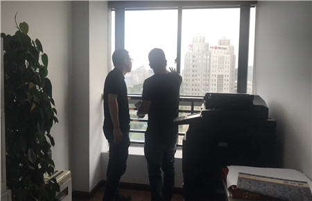 圖為檢查門窗 臺風來臨期間,市政公司要求員工手機保持暢通,盡量在公司或者家里不要外出,確保人身和財產(chǎn)的安全,避免不必要的傷害和損失。 徐夢燁